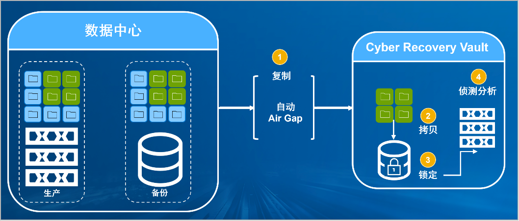 NO钱包官网防勒索病毒方案将生产中心备份数据复制到Vault区,复制后网络自动断开实现弹性隔离。Vault区的数据快速拷贝,并对拷贝版本加锁(在锁定期数据不允许删除和修改)。Vault沙箱内对拷贝版本进行扫描分析,验证数据是否完好。